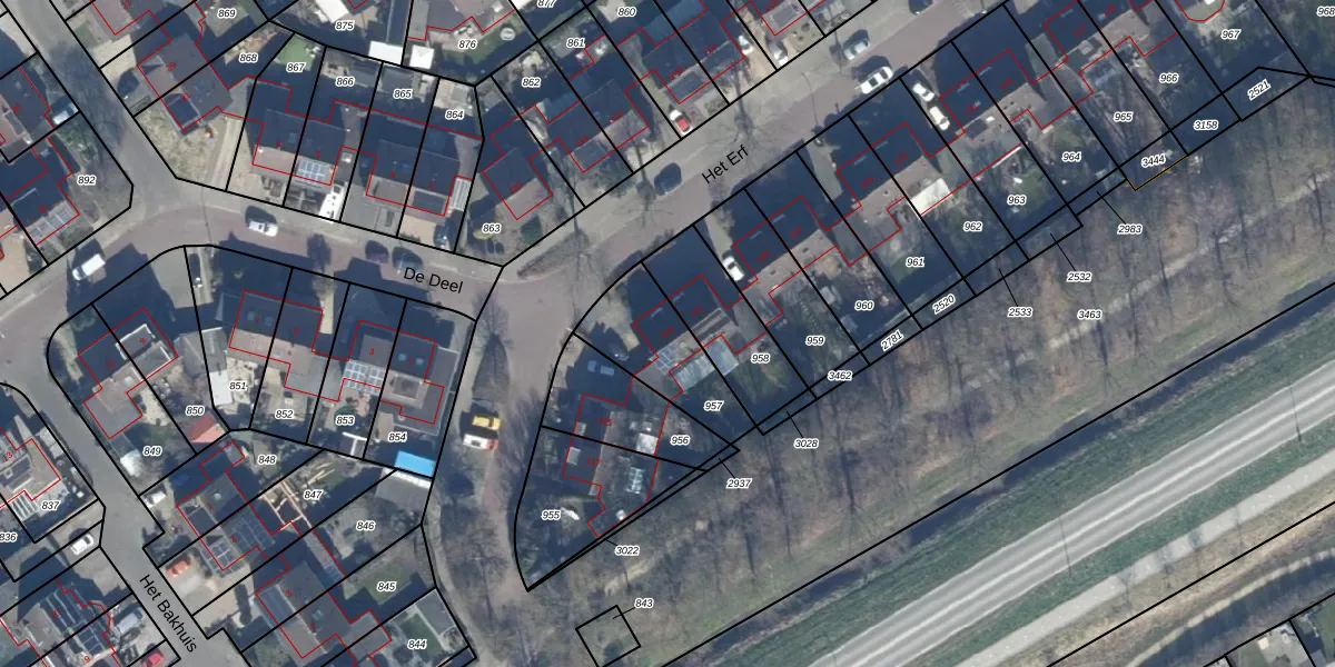 Het perceel waarop Het Erf 143 staat heeft een oppervlakte van 293 m². Dit is een middelgroot perceel. De perceeloppervlakte wordt geregistreerd door het Kadaster. Gedetailleerde informatie over de maten van dit perceel kunt u vinden in het rapport Kadastrale kaart met maatvoering van Het Erf 143.