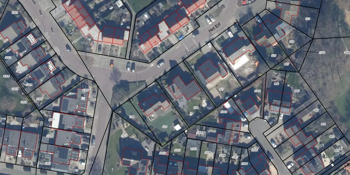 Het perceel waarop Het Erf 52 staat heeft een oppervlakte van 625 m². Dit is een groot perceel. De perceeloppervlakte wordt geregistreerd door het Kadaster. Gedetailleerde informatie over de maten van dit perceel kunt u vinden in het rapport Kadastrale kaart met maatvoering van Het Erf 52.