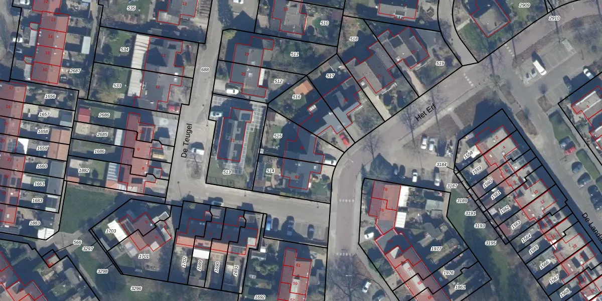 Het perceel waarop Het Erf 65 staat heeft een oppervlakte van 300 m². Dit is een groot perceel. De perceeloppervlakte wordt geregistreerd door het Kadaster. Gedetailleerde informatie over de maten van dit perceel kunt u vinden in het rapport Kadastrale kaart met maatvoering van Het Erf 65.