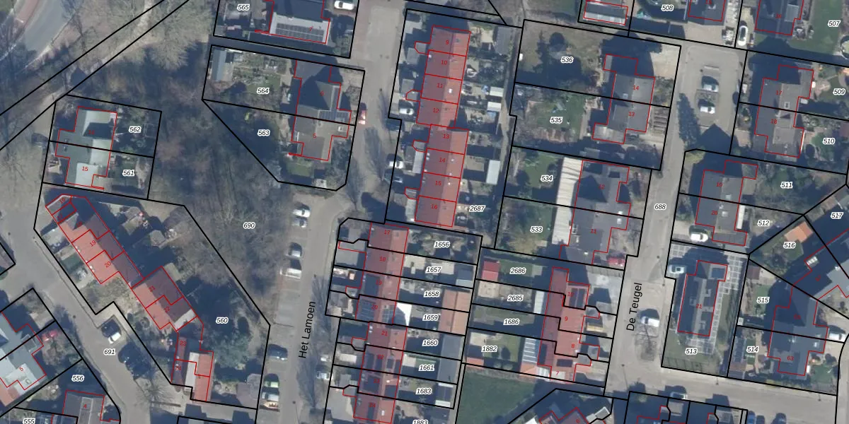 Het Lamoen 16 is gelegen op kadastraal perceel DTN01E2687. Deze kadastrale aanduiding is uniek en wordt gebruikt door het Kadaster om eigendomsrechten en andere zakelijke rechten vast te leggen. Het perceel maakt onderdeel uit van de kadastrale gemeente Dronten.