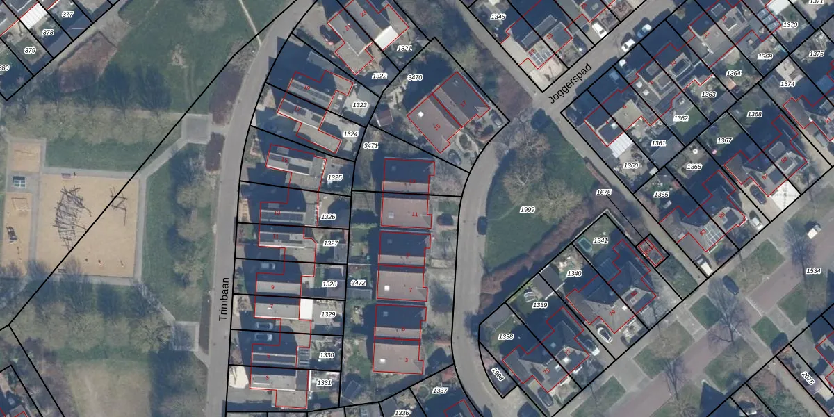 Het perceel waarop Joggerspad 11 staat heeft een oppervlakte van 1243 m². Dit is een zeer groot perceel. De perceeloppervlakte wordt geregistreerd door het Kadaster. Gedetailleerde informatie over de maten van dit perceel kunt u vinden in het rapport Kadastrale kaart met maatvoering van Joggerspad 11.