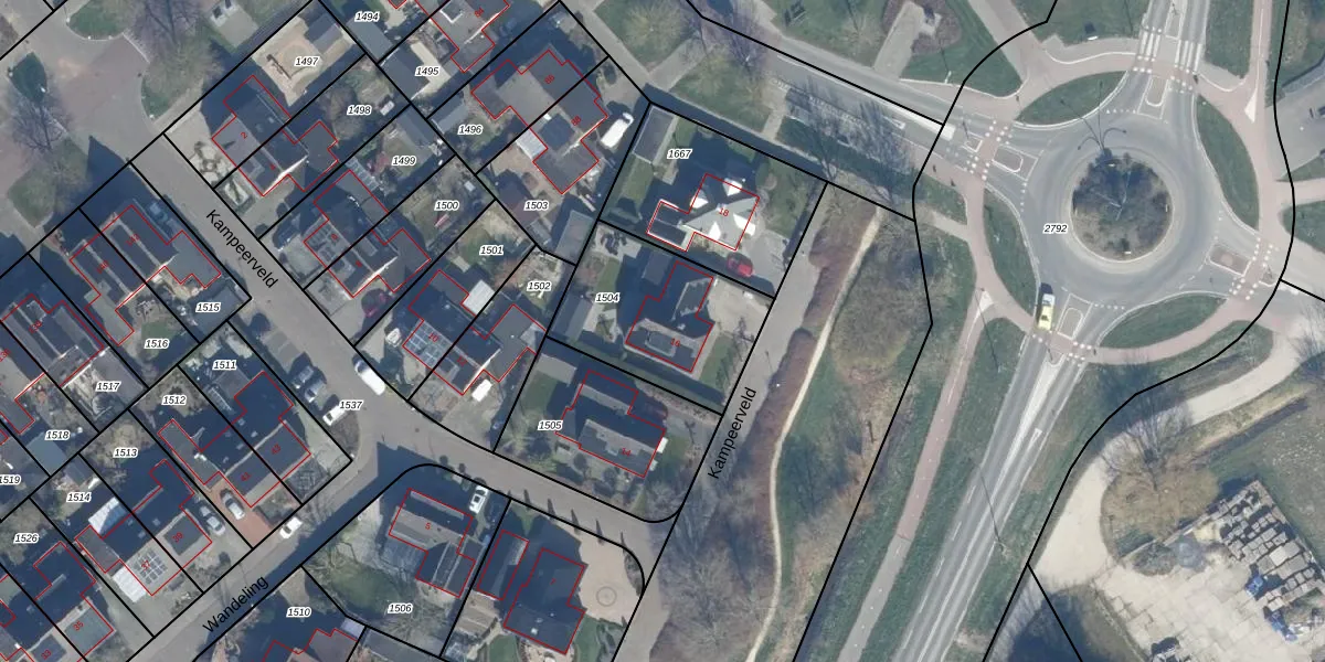Het perceel waarop Kampeerveld 16 staat heeft een oppervlakte van 566 m². Dit is een groot perceel. De perceeloppervlakte wordt geregistreerd door het Kadaster. Gedetailleerde informatie over de maten van dit perceel kunt u vinden in het rapport Kadastrale kaart met maatvoering van Kampeerveld 16.