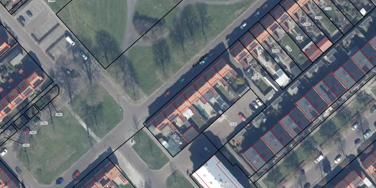 Het perceel waarop Kopakker 29 staat heeft een oppervlakte van 4328 m². Dit is een zeer groot perceel. De perceeloppervlakte wordt geregistreerd door het Kadaster. Gedetailleerde informatie over de maten van dit perceel kunt u vinden in het rapport Kadastrale kaart met maatvoering van Kopakker 29.