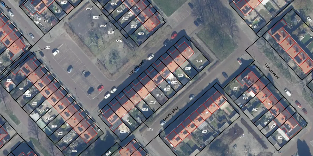 Het perceel waarop Lucernehof 108 staat heeft een oppervlakte van 151 m². Dit is een middelgroot perceel. De perceeloppervlakte wordt geregistreerd door het Kadaster. Gedetailleerde informatie over de maten van dit perceel kunt u vinden in het rapport Kadastrale kaart met maatvoering van Lucernehof 108.