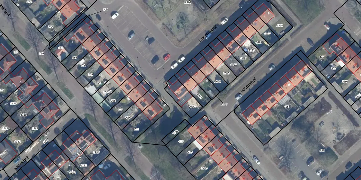 Het perceel waarop Lucernehof 120 staat heeft een oppervlakte van 215 m². Dit is een middelgroot perceel. De perceeloppervlakte wordt geregistreerd door het Kadaster. Gedetailleerde informatie over de maten van dit perceel kunt u vinden in het rapport Kadastrale kaart met maatvoering van Lucernehof 120.