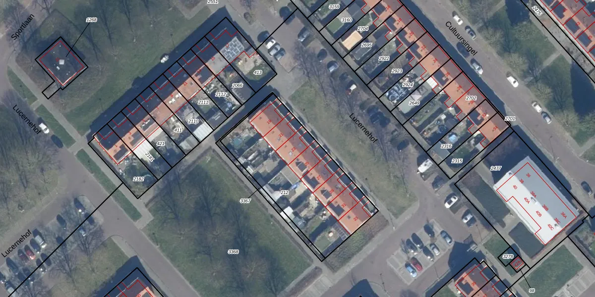 Het perceel waarop Lucernehof 23 staat heeft een oppervlakte van 1275 m². Dit is een zeer groot perceel. De perceeloppervlakte wordt geregistreerd door het Kadaster. Gedetailleerde informatie over de maten van dit perceel kunt u vinden in het rapport Kadastrale kaart met maatvoering van Lucernehof 23.