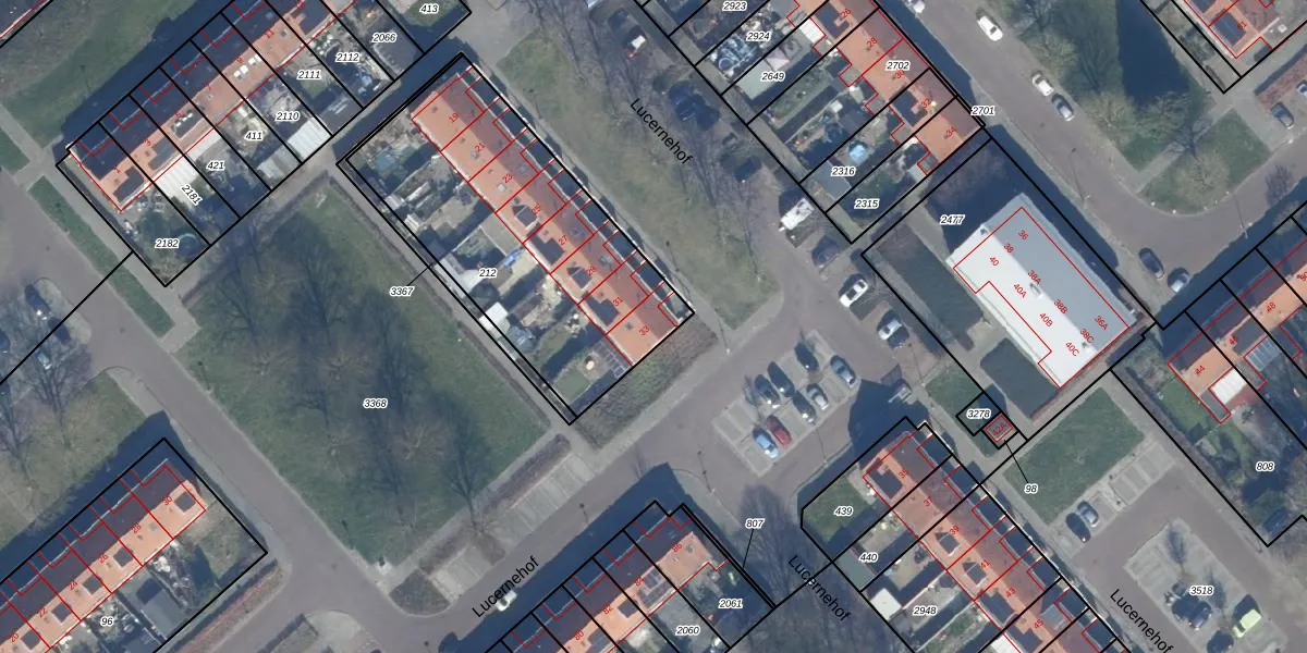 Het perceel waarop Lucernehof 33 staat heeft een oppervlakte van 1275 m². Dit is een zeer groot perceel. De perceeloppervlakte wordt geregistreerd door het Kadaster. Gedetailleerde informatie over de maten van dit perceel kunt u vinden in het rapport Kadastrale kaart met maatvoering van Lucernehof 33.