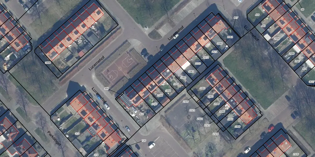 Het perceel waarop Lucernehof 70 staat heeft een oppervlakte van 155 m². Dit is een middelgroot perceel. De perceeloppervlakte wordt geregistreerd door het Kadaster. Gedetailleerde informatie over de maten van dit perceel kunt u vinden in het rapport Kadastrale kaart met maatvoering van Lucernehof 70.