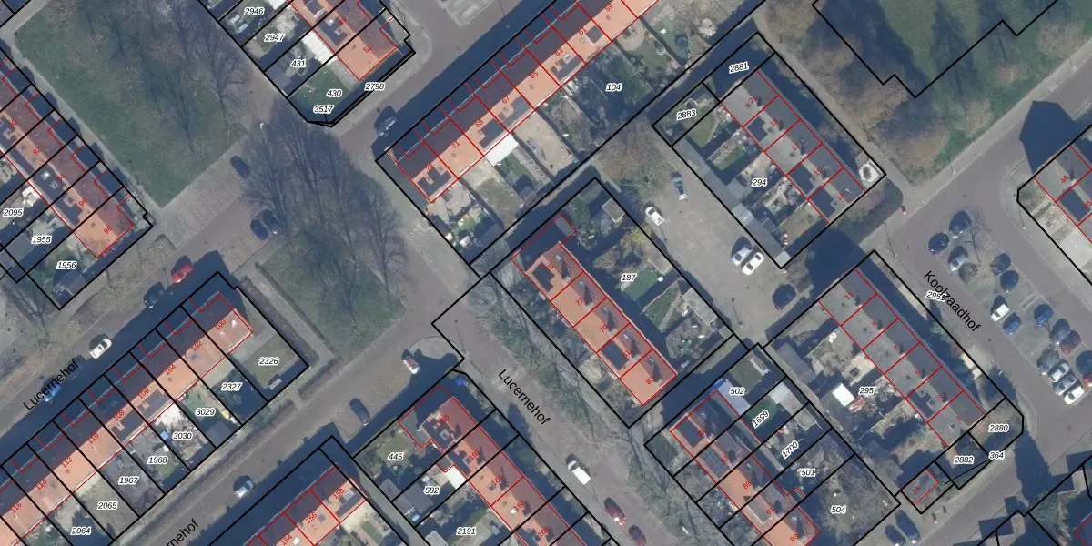 Het perceel waarop Lucernehof 75 staat heeft een oppervlakte van 991 m². Dit is een groot perceel. De perceeloppervlakte wordt geregistreerd door het Kadaster. Gedetailleerde informatie over de maten van dit perceel kunt u vinden in het rapport Kadastrale kaart met maatvoering van Lucernehof 75.