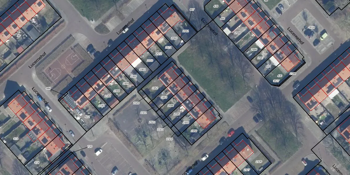 Het perceel waarop Lucernehof 90 staat heeft een oppervlakte van 151 m². Dit is een middelgroot perceel. De perceeloppervlakte wordt geregistreerd door het Kadaster. Gedetailleerde informatie over de maten van dit perceel kunt u vinden in het rapport Kadastrale kaart met maatvoering van Lucernehof 90.