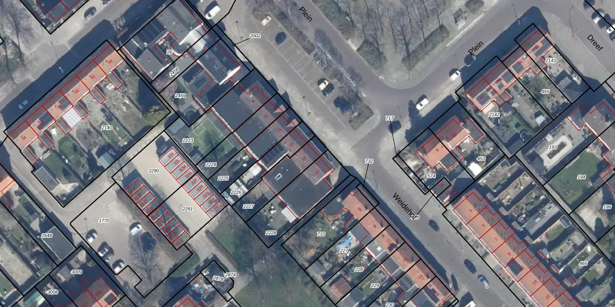 Het perceel waarop Plein 17 staat heeft een oppervlakte van 246 m². Dit is een middelgroot perceel. De perceeloppervlakte wordt geregistreerd door het Kadaster. Gedetailleerde informatie over de maten van dit perceel kunt u vinden in het rapport Kadastrale kaart met maatvoering van Plein 17.