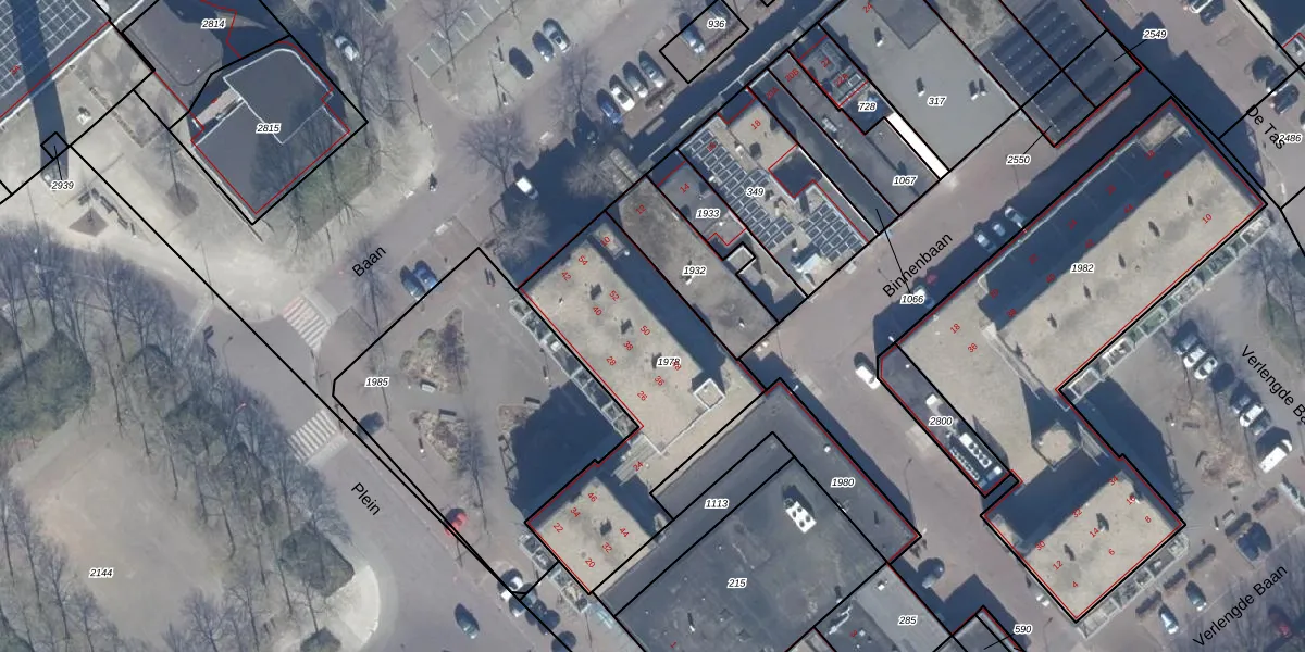 Het perceel waarop Plein 50 staat heeft een oppervlakte van 976 m². Dit is een groot perceel. De perceeloppervlakte wordt geregistreerd door het Kadaster. Gedetailleerde informatie over de maten van dit perceel kunt u vinden in het rapport Kadastrale kaart met maatvoering van Plein 50.
