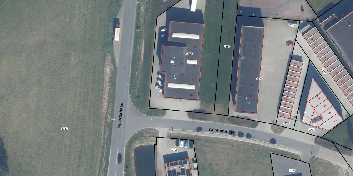 Het adres is gelegen op perceel 1858 in de sectie E en de kadastrale gemeente Dronten. De kadastrale aanduiding is aldus DTN01-E-1858. De gemiddelde perceelgrootte in Dronten is 1,8 ha. Dit perceel is kleiner: de perceeloppervlakte bedraagt 2500 m². Het kleinste perceel in de kadastrale gemeente is 0 m² groot. De grootste perceeloppervlakte is 25,03 km². Er zijn 5 adressen aanwezig op het perceel. In de Basisregistratie Kadaster (BRK) werden de grenzen van het perceel geregistreerd op 15-12-2011.