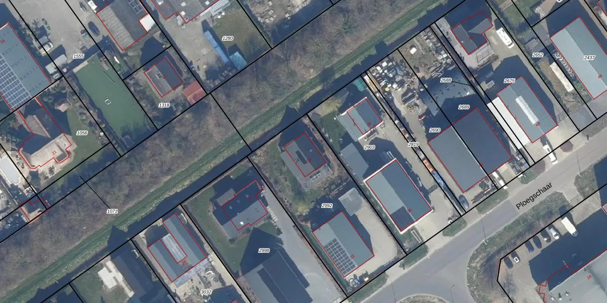 Het perceel waarop Ploegschaar 34 staat heeft een oppervlakte van 1380 m². Dit is een zeer groot perceel. De perceeloppervlakte wordt geregistreerd door het Kadaster. Gedetailleerde informatie over de maten van dit perceel kunt u vinden in het rapport Kadastrale kaart met maatvoering van Ploegschaar 34.