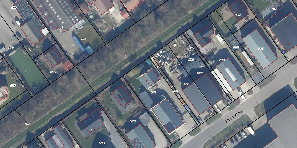 Het perceel waarop Ploegschaar 38 staat heeft een oppervlakte van 1255 m². Dit is een zeer groot perceel. De perceeloppervlakte wordt geregistreerd door het Kadaster. Gedetailleerde informatie over de maten van dit perceel kunt u vinden in het rapport Kadastrale kaart met maatvoering van Ploegschaar 38.