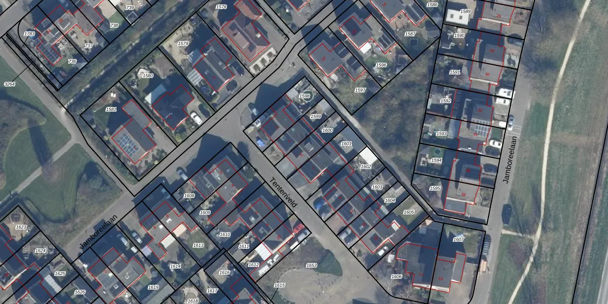 Het perceel waarop Tentenveld 5 staat heeft een oppervlakte van 163 m². Dit is een middelgroot perceel. De perceeloppervlakte wordt geregistreerd door het Kadaster. Gedetailleerde informatie over de maten van dit perceel kunt u vinden in het rapport Kadastrale kaart met maatvoering van Tentenveld 5.