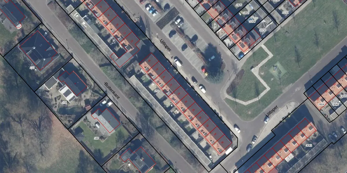 Het perceel waarop Uitloper 22 staat heeft een oppervlakte van 3107 m². Dit is een zeer groot perceel. De perceeloppervlakte wordt geregistreerd door het Kadaster. Gedetailleerde informatie over de maten van dit perceel kunt u vinden in het rapport Kadastrale kaart met maatvoering van Uitloper 22.
