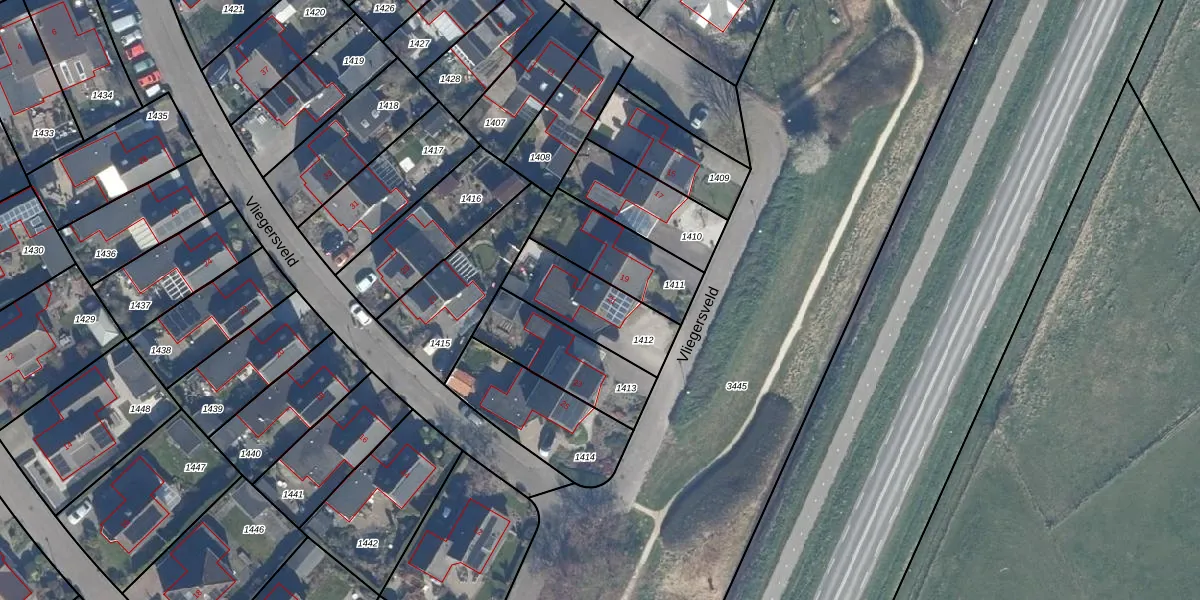Het perceel waarop Vliegersveld 21 staat heeft een oppervlakte van 284 m². Dit is een middelgroot perceel. De perceeloppervlakte wordt geregistreerd door het Kadaster. Gedetailleerde informatie over de maten van dit perceel kunt u vinden in het rapport Kadastrale kaart met maatvoering van Vliegersveld 21.