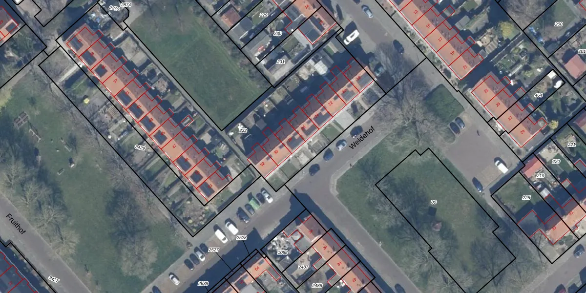 Het perceel waarop Weidehof 28 staat heeft een oppervlakte van 2981 m². Dit is een zeer groot perceel. De perceeloppervlakte wordt geregistreerd door het Kadaster. Gedetailleerde informatie over de maten van dit perceel kunt u vinden in het rapport Kadastrale kaart met maatvoering van Weidehof 28.