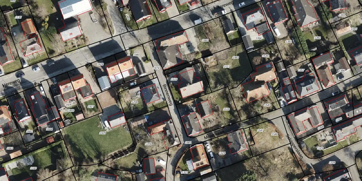 Gebruik de zoekbalk of klik op een perceel voor informatie over de adressen binnen dit perceel.