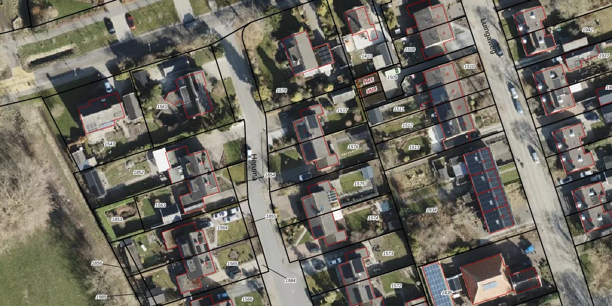 Het perceel waarop Heruma 2 staat heeft een oppervlakte van 435 m². Dit is een groot perceel. De perceeloppervlakte wordt geregistreerd door het Kadaster. Gedetailleerde informatie over de maten van dit perceel kunt u vinden in het rapport Kadastrale kaart met maatvoering van Heruma 2.