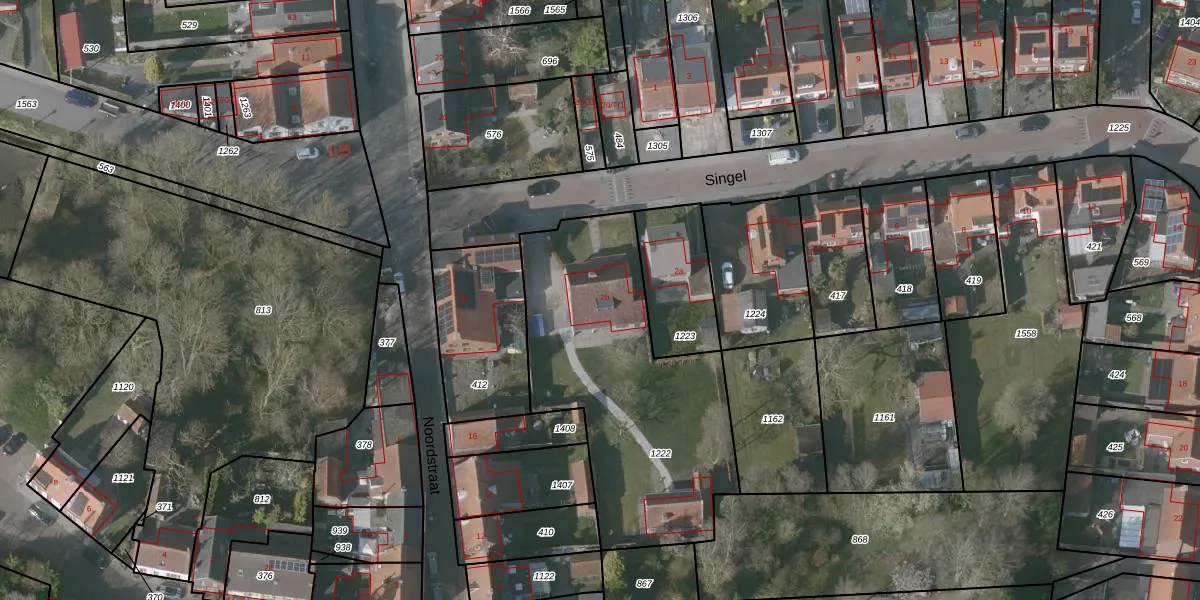 Gebruik de zoekbalk of klik op een perceel voor informatie over de adressen binnen dit perceel.