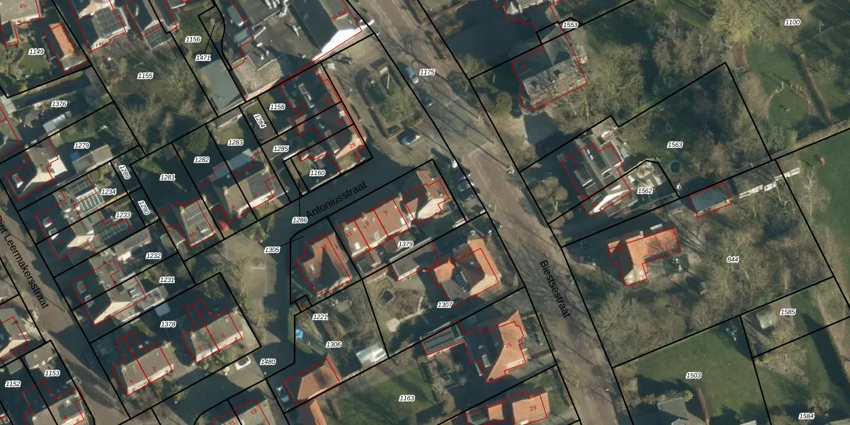 Het perceel waarop Antoniusstraat 5 staat heeft een oppervlakte van 477 m². Dit is een groot perceel. De perceeloppervlakte wordt geregistreerd door het Kadaster. Gedetailleerde informatie over de maten van dit perceel kunt u vinden in het rapport Kadastrale kaart met maatvoering van Antoniusstraat 5.