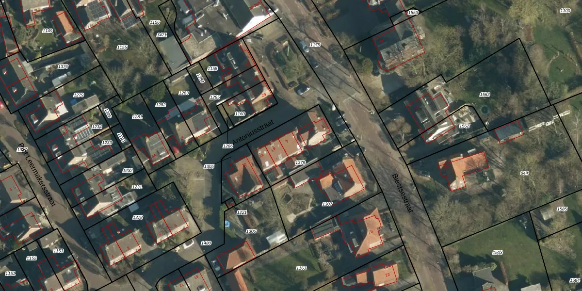 Het perceel waarop Antoniusstraat 7 staat heeft een oppervlakte van 477 m². Dit is een groot perceel. De perceeloppervlakte wordt geregistreerd door het Kadaster. Gedetailleerde informatie over de maten van dit perceel kunt u vinden in het rapport Kadastrale kaart met maatvoering van Antoniusstraat 7.