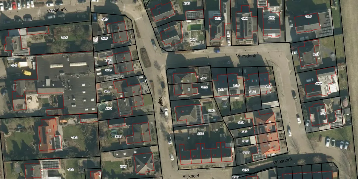 Slijkhoef 9 is gelegen op kadastraal perceel UDH00E5871. Deze kadastrale aanduiding is uniek en wordt gebruikt door het Kadaster om eigendomsrechten en andere zakelijke rechten vast te leggen. Het perceel maakt onderdeel uit van de kadastrale gemeente Udenhout.