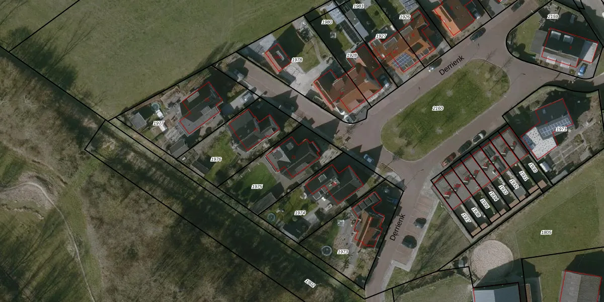Het perceel waarop Derrienk 21 staat heeft een oppervlakte van 547 m². Dit is een groot perceel. De perceeloppervlakte wordt geregistreerd door het Kadaster. Gedetailleerde informatie over de maten van dit perceel kunt u vinden in het rapport Kadastrale kaart met maatvoering van Derrienk 21.