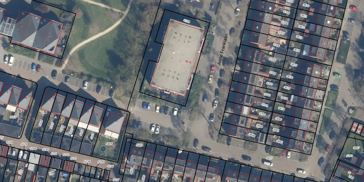 Het perceel waarop Anne Franklaan 49 staat heeft een oppervlakte van 1198 m². Dit is een zeer groot perceel. De perceeloppervlakte wordt geregistreerd door het Kadaster. Gedetailleerde informatie over de maten van dit perceel kunt u vinden in het rapport Kadastrale kaart met maatvoering van Anne Franklaan 49.
