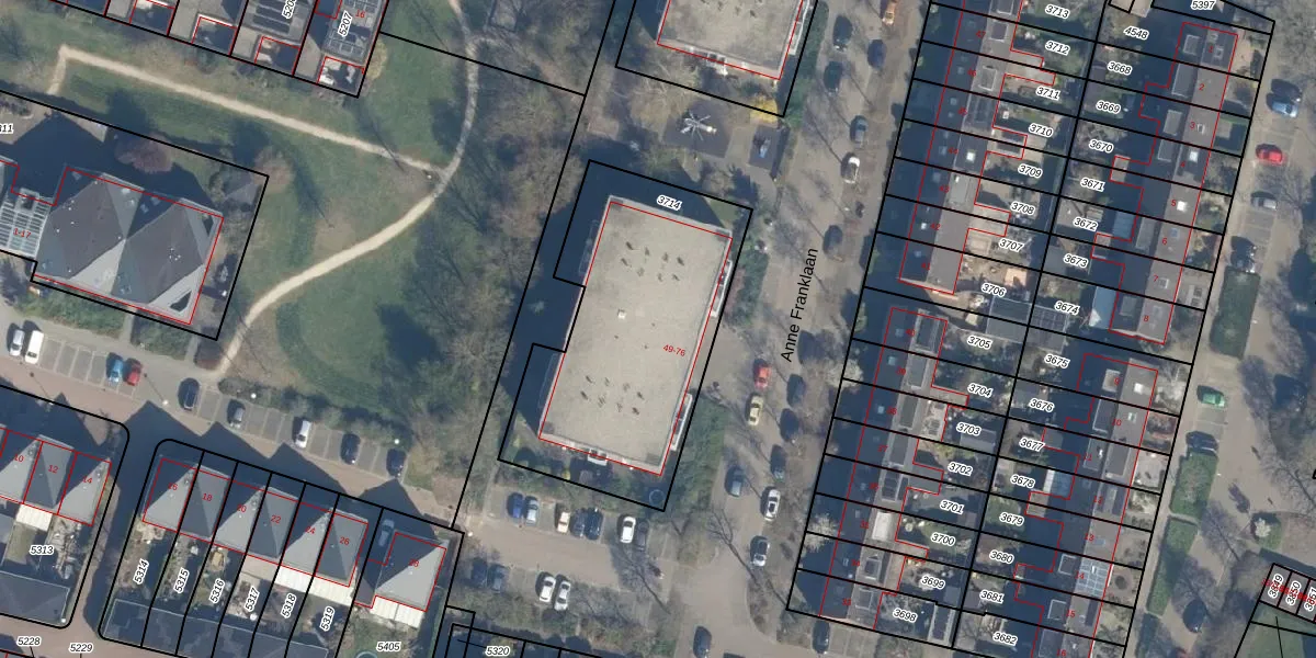 Het perceel waarop Anne Franklaan 59 staat heeft een oppervlakte van 1198 m². Dit is een zeer groot perceel. De perceeloppervlakte wordt geregistreerd door het Kadaster. Gedetailleerde informatie over de maten van dit perceel kunt u vinden in het rapport Kadastrale kaart met maatvoering van Anne Franklaan 59.