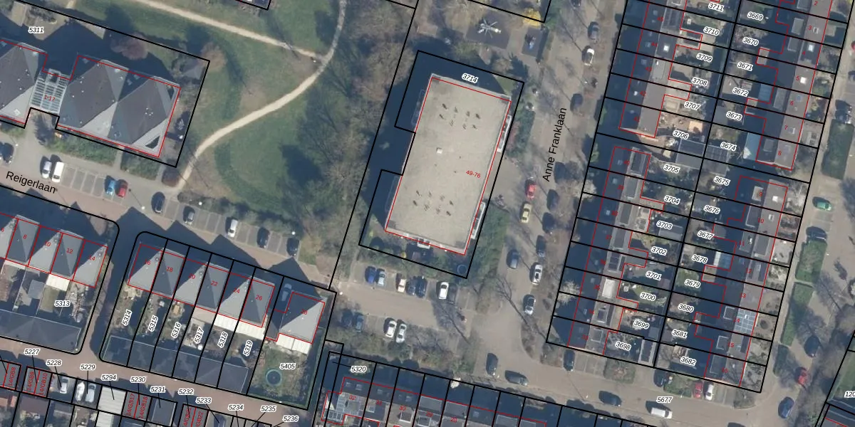 Het perceel waarop Anne Franklaan 63 staat heeft een oppervlakte van 1198 m². Dit is een zeer groot perceel. De perceeloppervlakte wordt geregistreerd door het Kadaster. Gedetailleerde informatie over de maten van dit perceel kunt u vinden in het rapport Kadastrale kaart met maatvoering van Anne Franklaan 63.