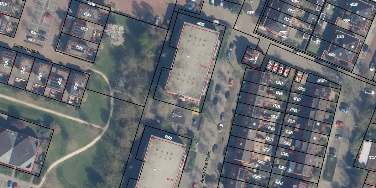 Het perceel waarop Anne Franklaan 84 staat heeft een oppervlakte van 1197 m². Dit is een zeer groot perceel. De perceeloppervlakte wordt geregistreerd door het Kadaster. Gedetailleerde informatie over de maten van dit perceel kunt u vinden in het rapport Kadastrale kaart met maatvoering van Anne Franklaan 84.