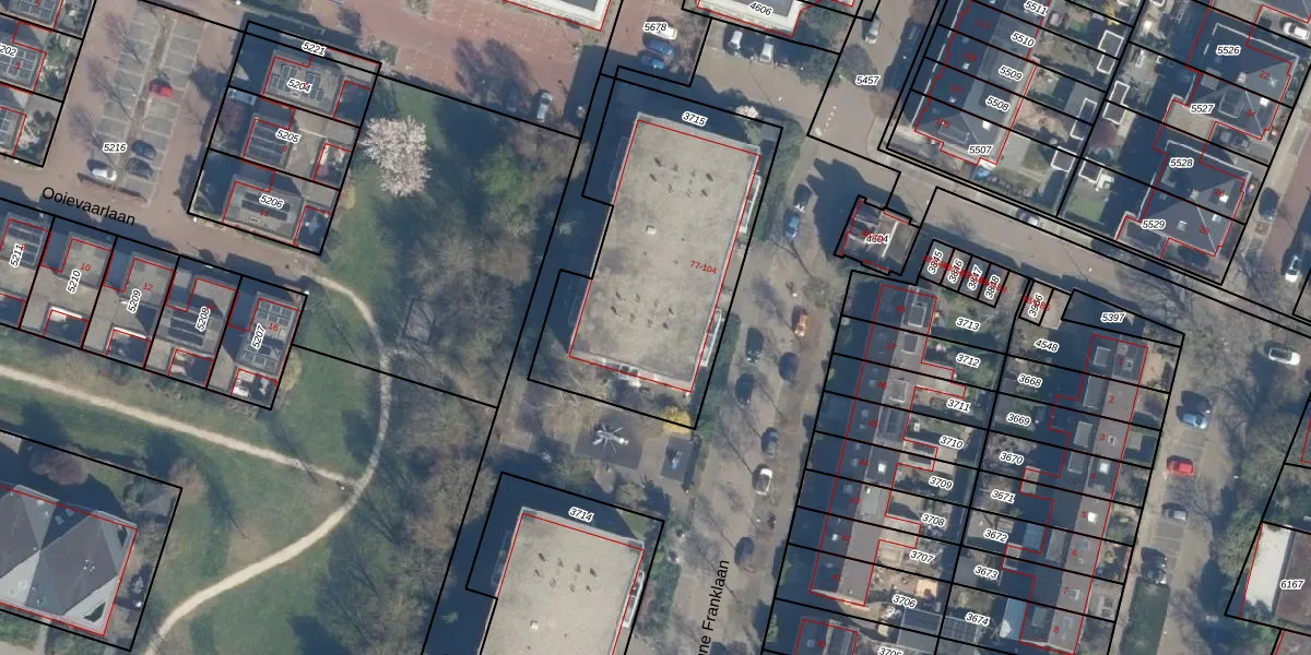 Het perceel waarop Anne Franklaan 85 staat heeft een oppervlakte van 1197 m². Dit is een zeer groot perceel. De perceeloppervlakte wordt geregistreerd door het Kadaster. Gedetailleerde informatie over de maten van dit perceel kunt u vinden in het rapport Kadastrale kaart met maatvoering van Anne Franklaan 85.
