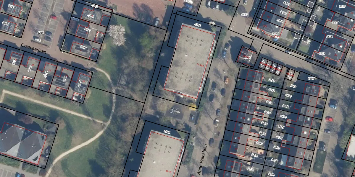 Het perceel waarop Anne Franklaan 91 staat heeft een oppervlakte van 1197 m². Dit is een zeer groot perceel. De perceeloppervlakte wordt geregistreerd door het Kadaster. Gedetailleerde informatie over de maten van dit perceel kunt u vinden in het rapport Kadastrale kaart met maatvoering van Anne Franklaan 91.