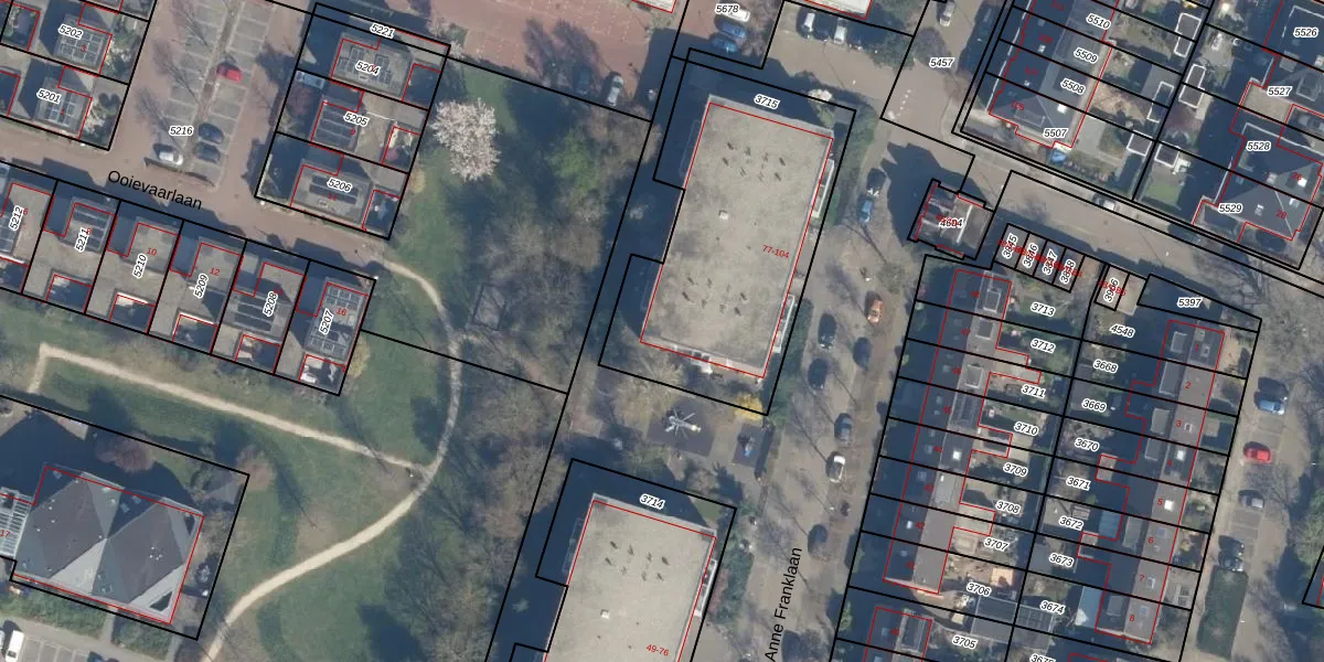 Het perceel waarop Anne Franklaan 98 staat heeft een oppervlakte van 1197 m². Dit is een zeer groot perceel. De perceeloppervlakte wordt geregistreerd door het Kadaster. Gedetailleerde informatie over de maten van dit perceel kunt u vinden in het rapport Kadastrale kaart met maatvoering van Anne Franklaan 98.