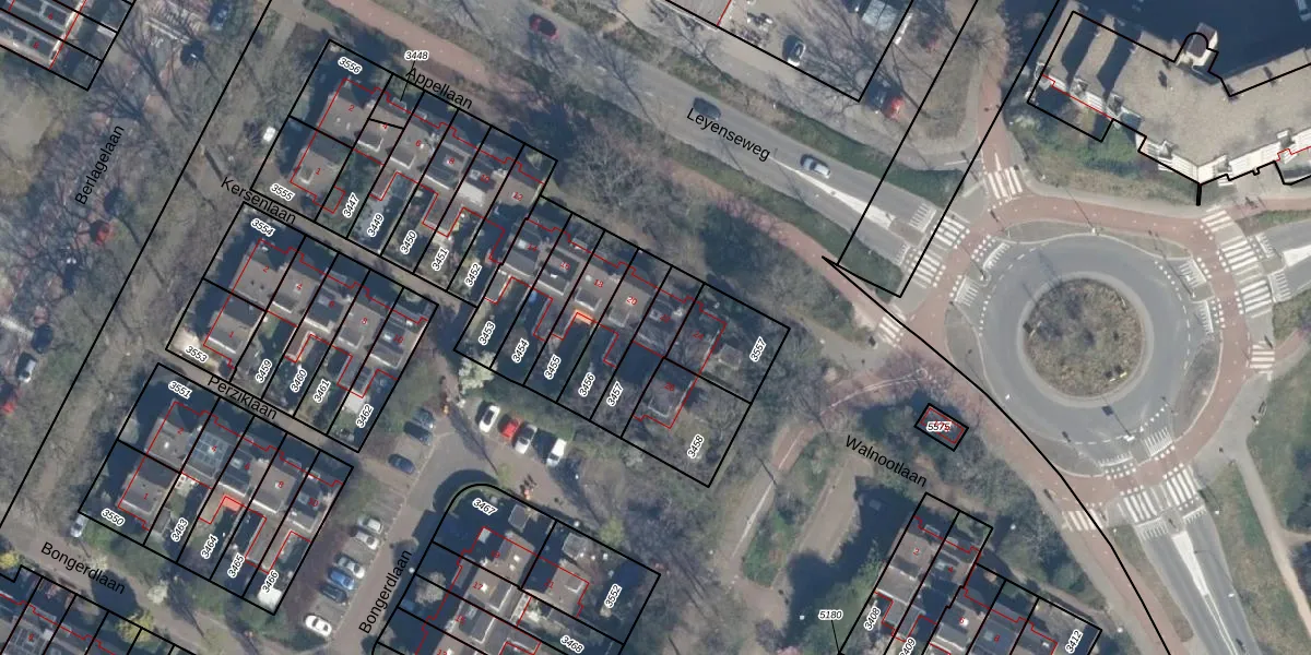 Gebruik de zoekbalk of klik op een perceel voor informatie over de adressen binnen dit perceel.