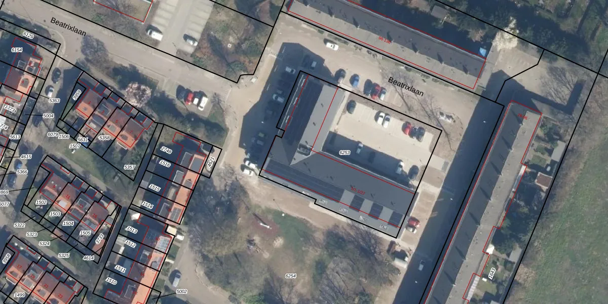 Beatrixlaan 1-12 is gelegen op kadastraal perceel BIL01F6253. Deze kadastrale aanduiding is uniek en wordt gebruikt door het Kadaster om eigendomsrechten en andere zakelijke rechten vast te leggen. Het perceel maakt onderdeel uit van de kadastrale gemeente De Bilt.
