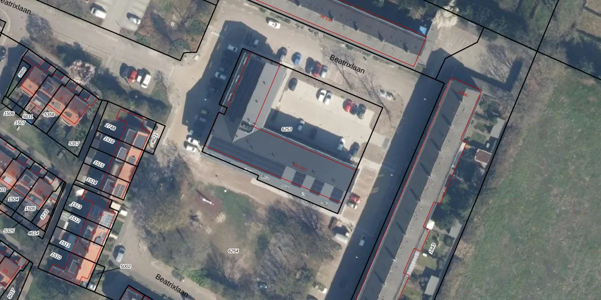 Het perceel waarop Beatrixlaan 1-16 staat heeft een oppervlakte van 1892 m². Dit is een zeer groot perceel. De perceeloppervlakte wordt geregistreerd door het Kadaster. Gedetailleerde informatie over de maten van dit perceel kunt u vinden in het rapport Kadastrale kaart met maatvoering van Beatrixlaan 1-16.