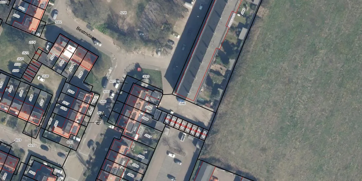Het perceel waarop Beatrixlaan 26 staat heeft een oppervlakte van 3223 m². Dit is een zeer groot perceel. De perceeloppervlakte wordt geregistreerd door het Kadaster. Gedetailleerde informatie over de maten van dit perceel kunt u vinden in het rapport Kadastrale kaart met maatvoering van Beatrixlaan 26.