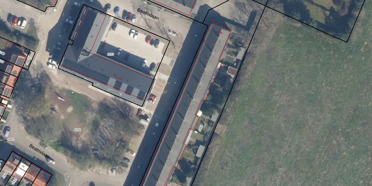 Het perceel waarop Beatrixlaan 90 staat heeft een oppervlakte van 3223 m². Dit is een zeer groot perceel. De perceeloppervlakte wordt geregistreerd door het Kadaster. Gedetailleerde informatie over de maten van dit perceel kunt u vinden in het rapport Kadastrale kaart met maatvoering van Beatrixlaan 90.