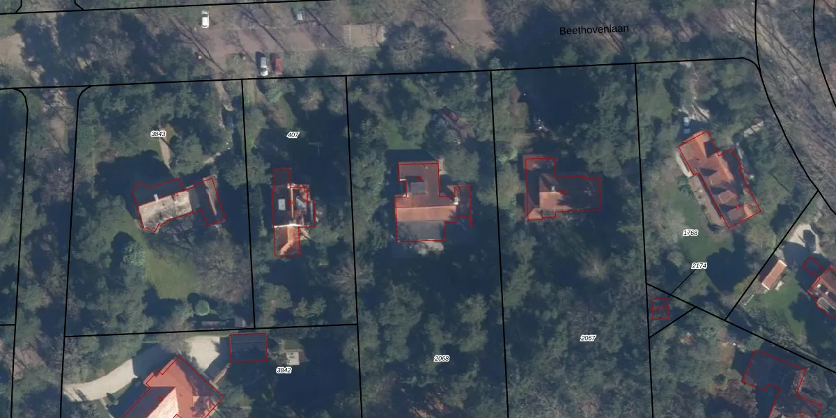 Het perceel waarop Beethovenlaan 28 staat heeft een oppervlakte van 3355 m². Dit is een zeer groot perceel. De perceeloppervlakte wordt geregistreerd door het Kadaster. Gedetailleerde informatie over de maten van dit perceel kunt u vinden in het rapport Kadastrale kaart met maatvoering van Beethovenlaan 28.