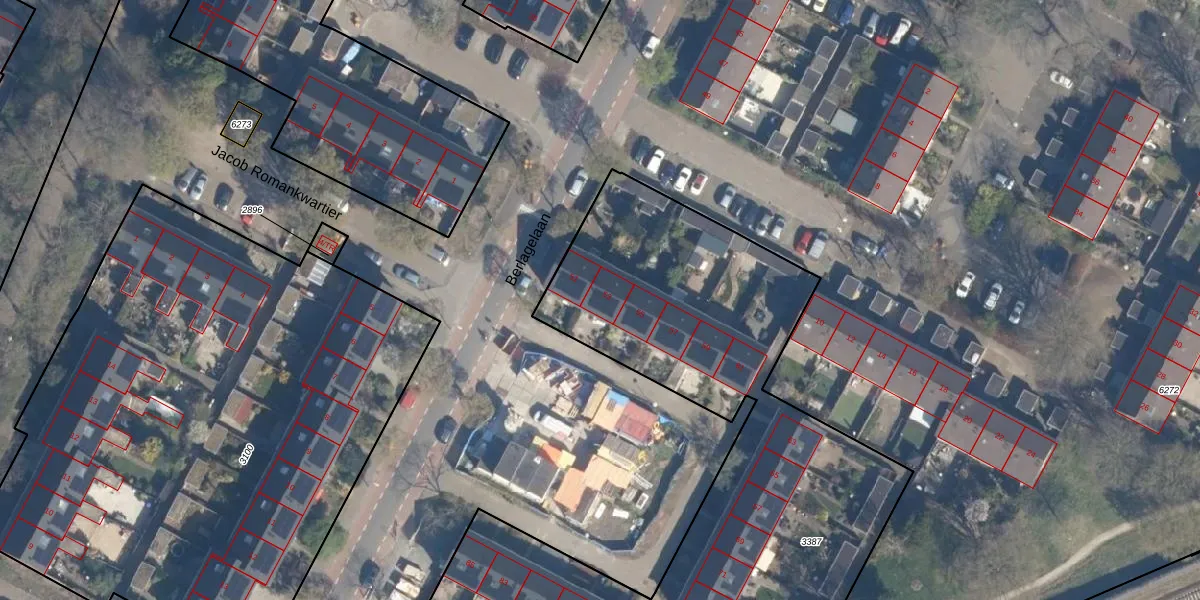 Het perceel waarop Berlagelaan 53 staat heeft een oppervlakte van 3945 m². Dit is een zeer groot perceel. De perceeloppervlakte wordt geregistreerd door het Kadaster. Gedetailleerde informatie over de maten van dit perceel kunt u vinden in het rapport Kadastrale kaart met maatvoering van Berlagelaan 53.