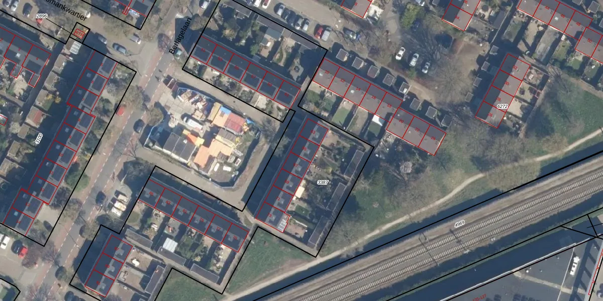Het perceel waarop Berlagelaan 65 staat heeft een oppervlakte van 3945 m². Dit is een zeer groot perceel. De perceeloppervlakte wordt geregistreerd door het Kadaster. Gedetailleerde informatie over de maten van dit perceel kunt u vinden in het rapport Kadastrale kaart met maatvoering van Berlagelaan 65.