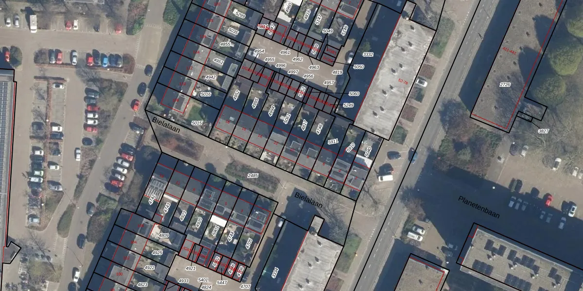 Het perceel waarop Bielalaan 10 staat heeft een oppervlakte van 163 m². Dit is een middelgroot perceel. De perceeloppervlakte wordt geregistreerd door het Kadaster. Gedetailleerde informatie over de maten van dit perceel kunt u vinden in het rapport Kadastrale kaart met maatvoering van Bielalaan 10.