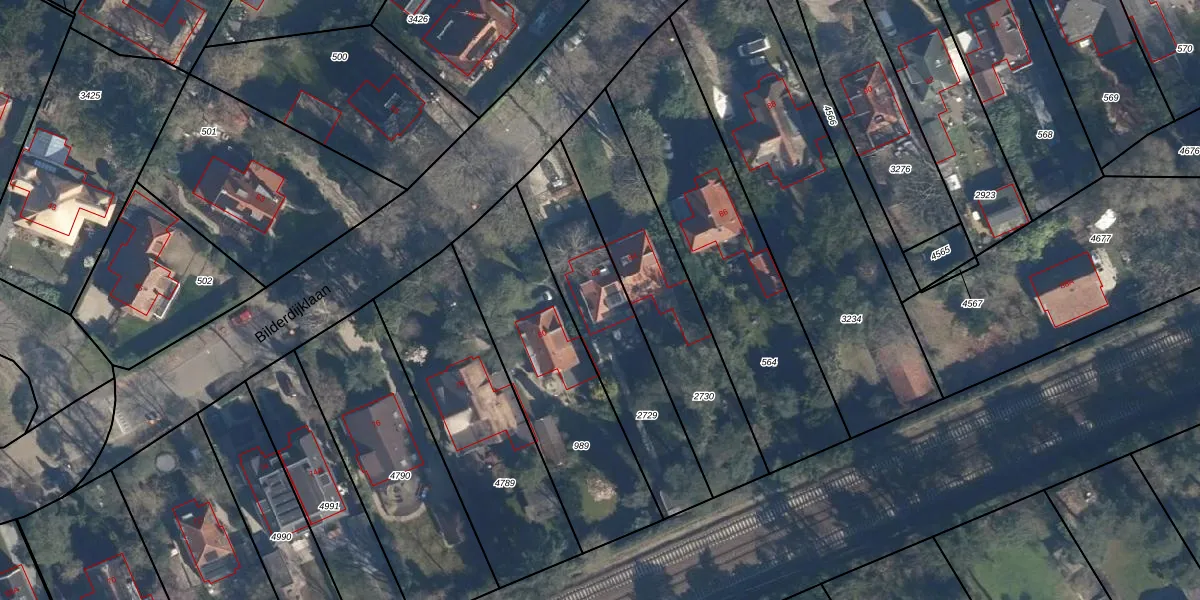 Het perceel waarop Bilderdijklaan 82 staat heeft een oppervlakte van 598 m². Dit is een groot perceel. De perceeloppervlakte wordt geregistreerd door het Kadaster. Gedetailleerde informatie over de maten van dit perceel kunt u vinden in het rapport Kadastrale kaart met maatvoering van Bilderdijklaan 82.