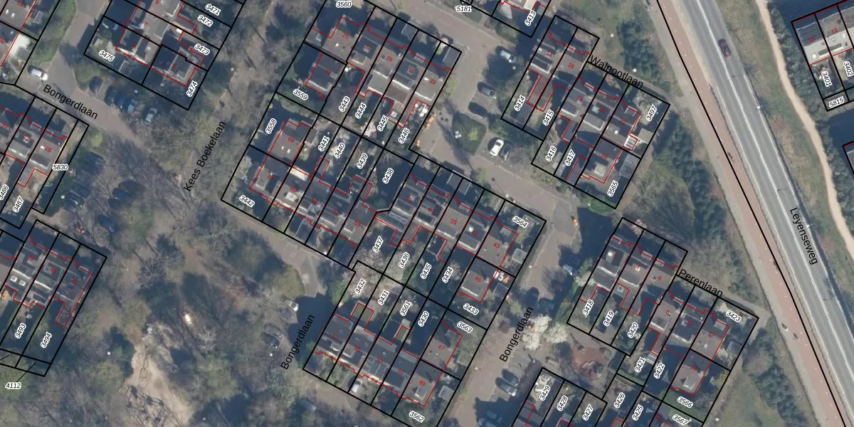 Het perceel waarop Bongerdlaan 37 staat heeft een oppervlakte van 164 m². Dit is een middelgroot perceel. De perceeloppervlakte wordt geregistreerd door het Kadaster. Gedetailleerde informatie over de maten van dit perceel kunt u vinden in het rapport Kadastrale kaart met maatvoering van Bongerdlaan 37.
