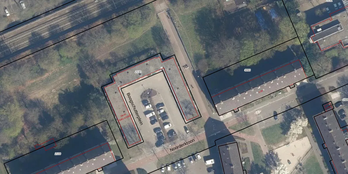 Het perceel waarop Boogschutterplein 1-GB13 staat heeft een oppervlakte van 1033 m². Dit is een zeer groot perceel. De perceeloppervlakte wordt geregistreerd door het Kadaster. Gedetailleerde informatie over de maten van dit perceel kunt u vinden in het rapport Kadastrale kaart met maatvoering van Boogschutterplein 1-GB13.