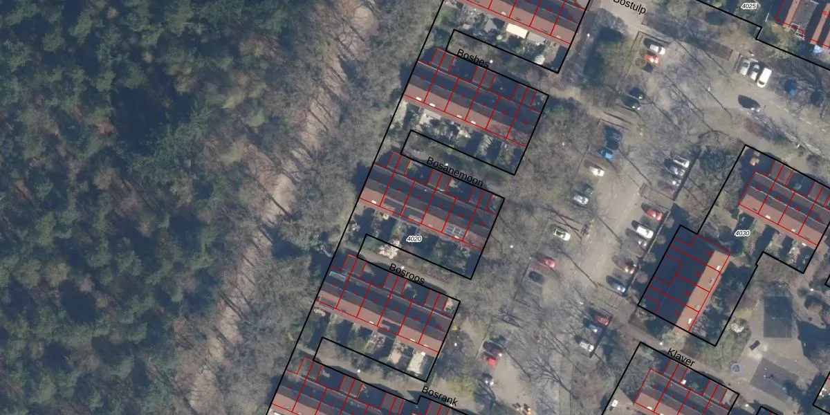 Het perceel waarop Bosanemoon 6 staat heeft een oppervlakte van 4080 m². Dit is een zeer groot perceel. De perceeloppervlakte wordt geregistreerd door het Kadaster. Gedetailleerde informatie over de maten van dit perceel kunt u vinden in het rapport Kadastrale kaart met maatvoering van Bosanemoon 6.